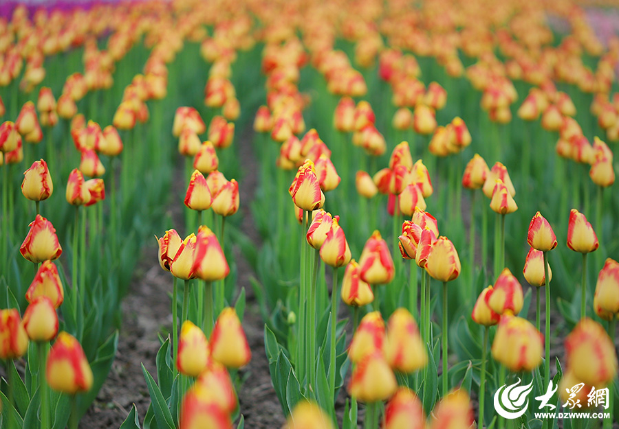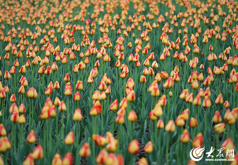 金黄色郁金香花田特写,花团锦簇(摄影:李鹏)