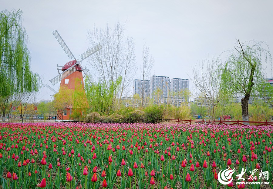 风车景观与郁金香花海同框,打造欧式春日盛景(摄影:李鹏)